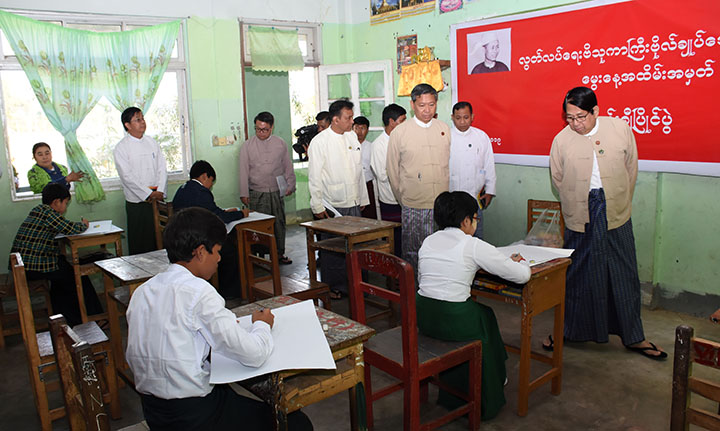 Lastly, the Union Ministers visited B.E.H.S. 13, where they observed a seminar and competitions on poem recitals, storytelling and coloring held to commemorate the Bogyoke’s birthday, and then took a documentary photo with the students.