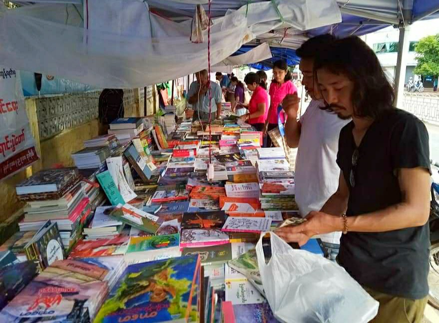 At the book fair, a total of 15 book shops from Yangon are being opened and those who visit the book fair can get their caricatures drawn by famous cartoonists, according to a member of organizing committee.