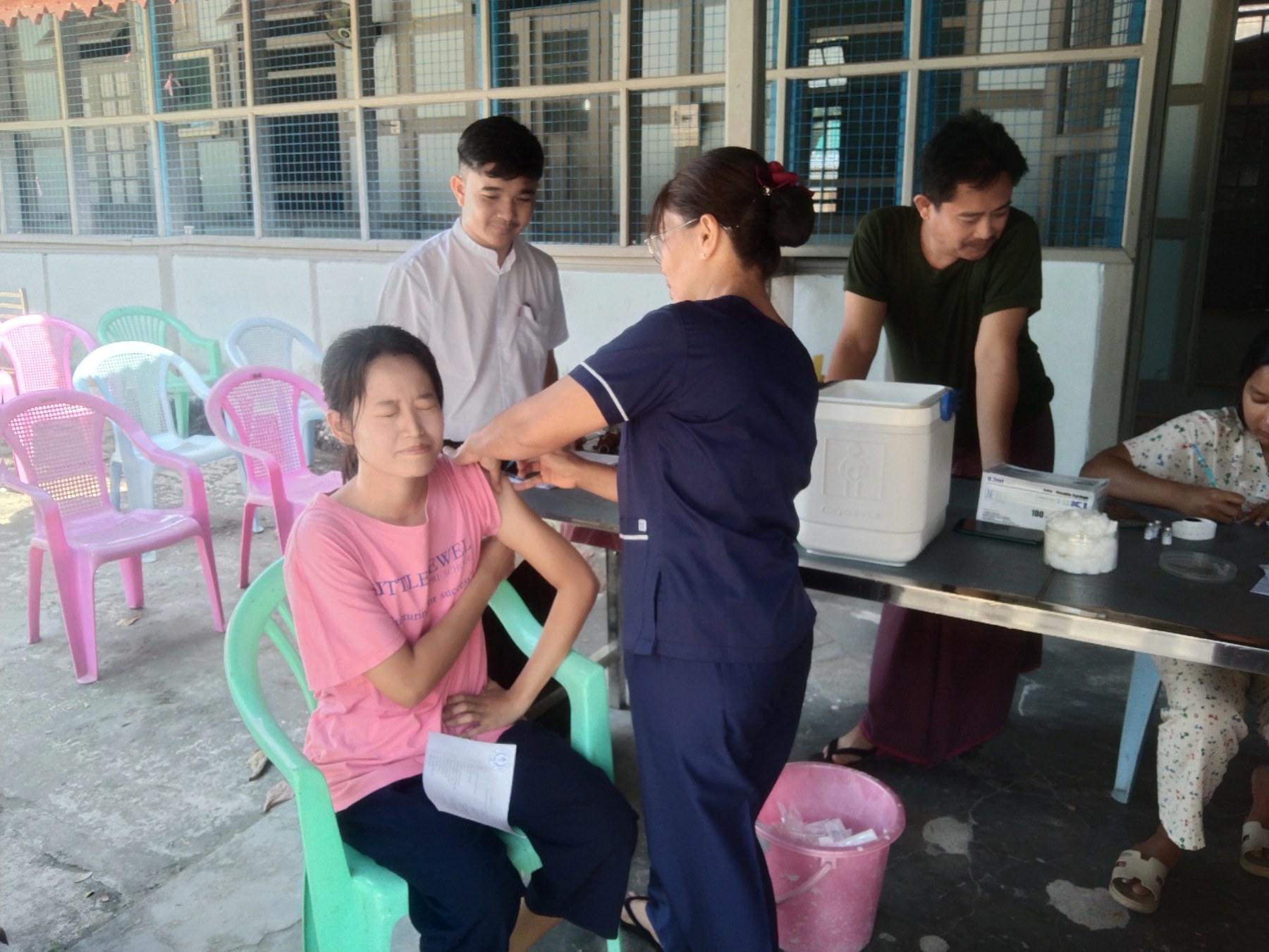 Medical staff, led by Dr. Kyaw Win Zaw, head of the District Department of Public Health, are providing the Pfizer COVID-19 vaccine to local residents and government employees aged 50 and above in the township, in accordance with COVID-19 health guidelines.