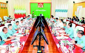 Maj-Gen Phyo Thant, Deputy Minister for Border Affairs and Chairperson of the Subcommittee, presided over the meeting. Attendees included heads of departments from relevant ministries, chairpersons of regional and state subcommittees, and other officials.