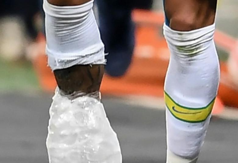 A large ice pack had been strapped to the Paris Saint-Germain striker's lower right leg while two members of Brazil's support staff carried him from the pitch.