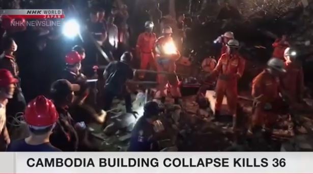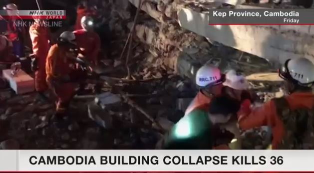 Officials in Cambodia say 36 people were killed after a seven-story building that was under construction collapsed in the south of the country.