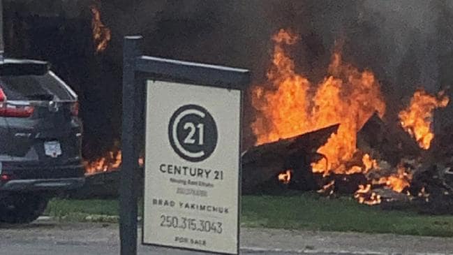 The jet crashed around noon, local time, on Sunday in the city of Kamloops, British Columbia. Images show flames shooting up from a house at the crash site.