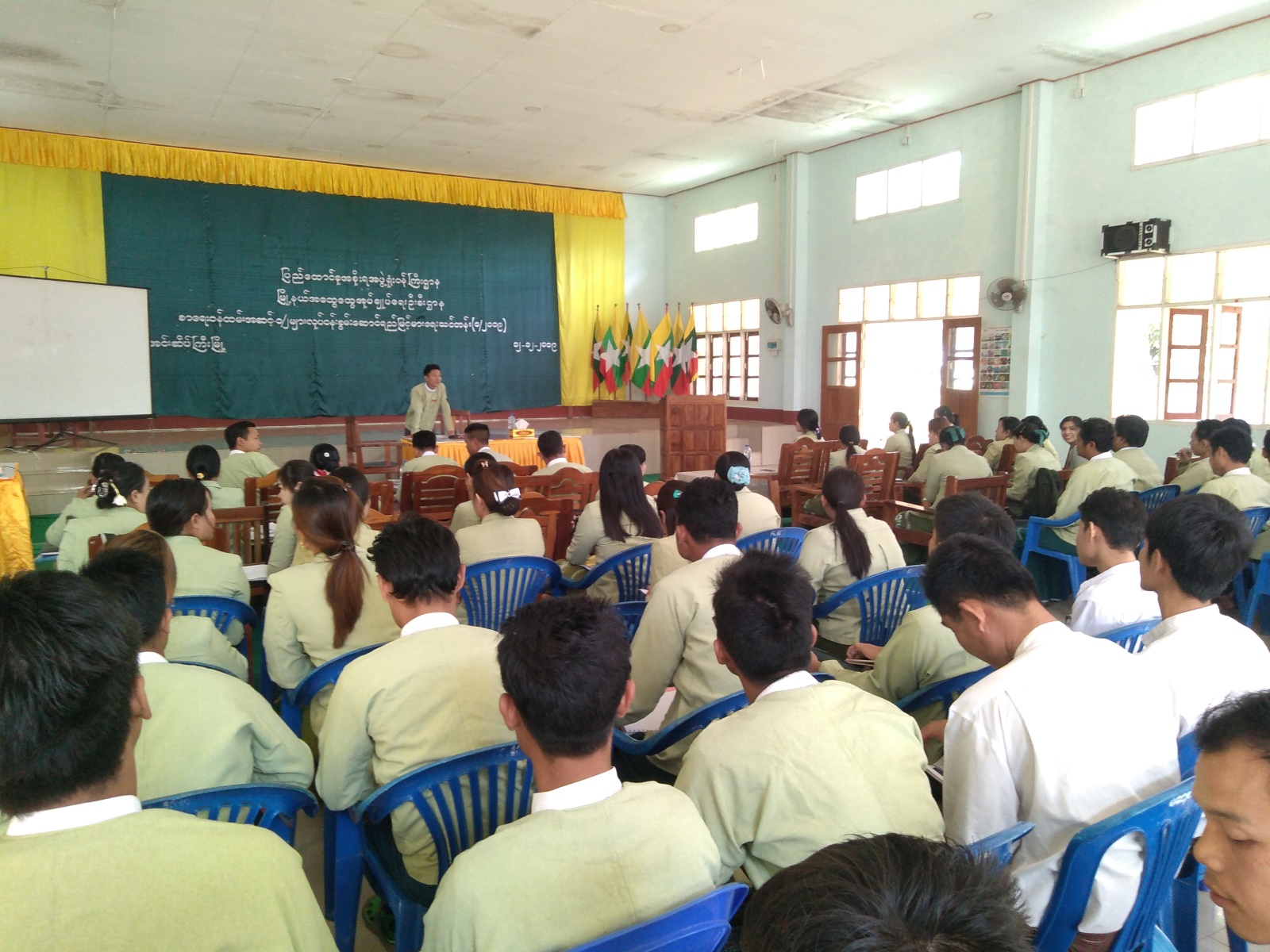 First, the township Administrator U Kyaw Soe made a speech and called on the trainees to practically apply the lessons learned in the training to improve their capacity in their office. Then, deputy Administrator U Wei Yan clarified the purpose of the training course.