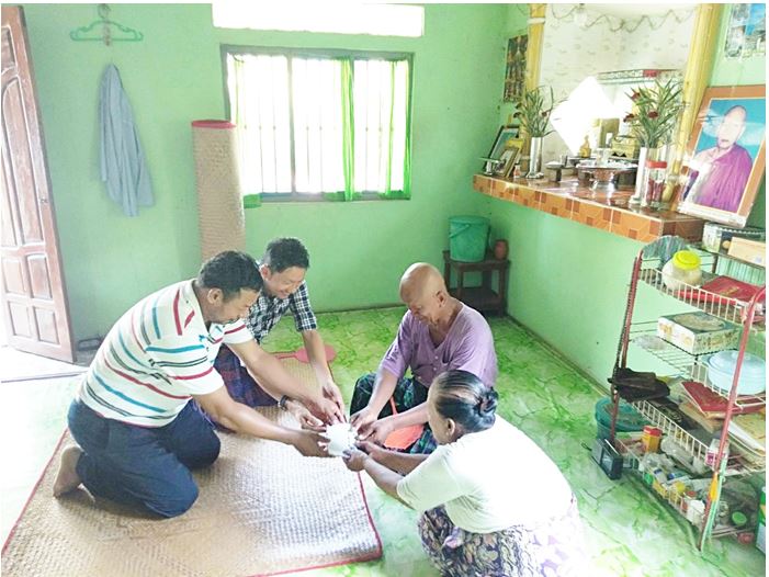 Two brothers, identified as U Nay Myint and U Phyo Wei from the town of Thanlyin paid domiciliary visit to provide cash assistance to elderly people above 80 years old in Nyaung Lan Gone Village in Thongwa Township, Yangon Region yesterday.