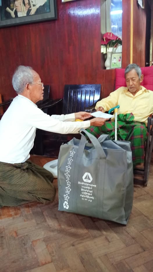 “Due to space constraints, and because many elderly artistes can’t sit for long periods or need to use wheelchairs, only around forty of them were able to attend the respect-paying ceremony. Therefore, starting from 14 October, the organization has been distributing offertory cash and gifts to the remaining veteran artistes. For those who are bedridden or too unwell to travel, our teams have been personally visiting their homes to pay respects since 19 October,” said U Aye Kyu Lay.