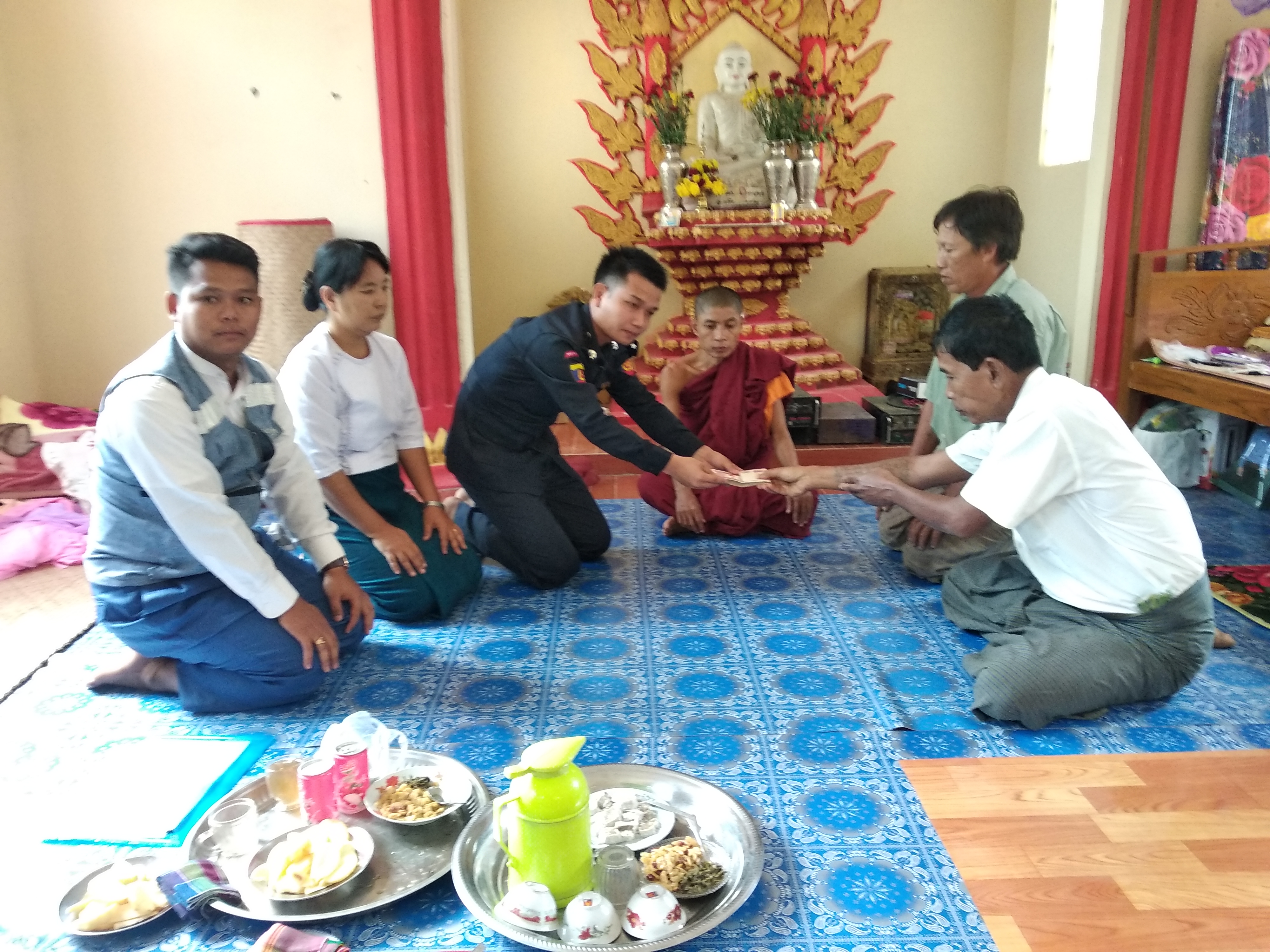 The monastery has been badly destroyed by the fire recently. At the ceremony, concerned officials from the Department of Disaster Management under the Ministry of Social Welfare, Relief and Resettlement presented Ks. 300,000 to the abbot, a village administrator and a village elder to reconstruct the damaged monastery.—Wint Nandar Htay
