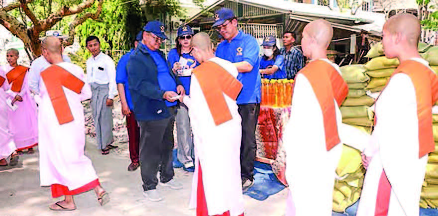 Donations, which began on 2 April, included rice, cooking oil, cash, and food supplies. These were offered to those who lost their lives in the disaster, as well as to the injured currently receiving medical treatment. The donations comprised offerings of rice and green gram to Buddhist monks and nuns – eight Pyi of rice, one 50-tical bottle of cooking oil, and a donation of K50,000 per monk or nun. Laypeople received the same quantities of rice and oil, along with K50,000 each. Soft drinks and purified drinking water were also distributed.