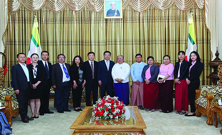 Central Bank of Myanmar Governor U Kyaw Kyaw Maung received People’s Bank of China Kunming Branch Deputy Governor Mr Jing Wei at Gangaw Hall of CBM in Nay Pyi Taw yesterday.