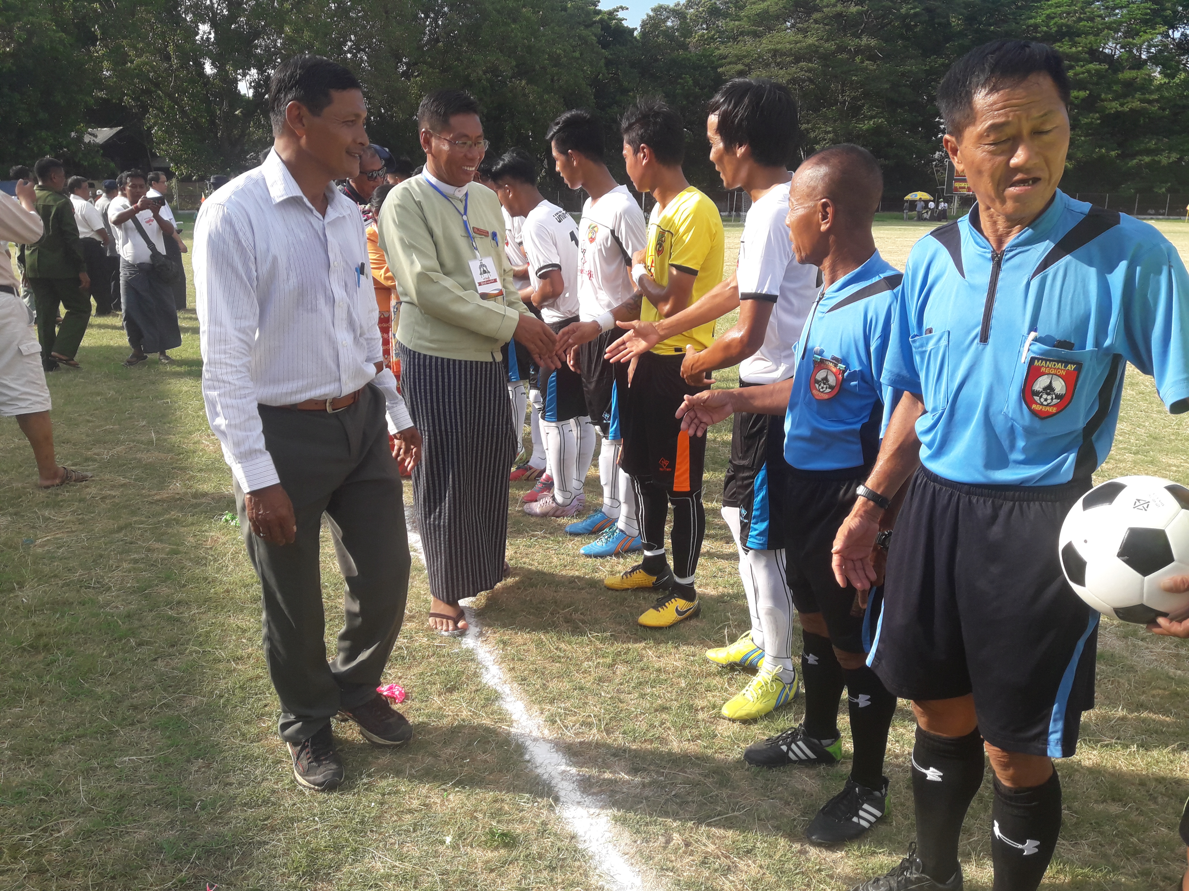 The football contest was opened by Regional Lawmaker for Constituency No.1 Daw San San Win, Township Administrator U Kyaw Swe Win, the head of township police force Thein Htay Win, officials from the Sports and Physical Education Department and the township development committee, and chairman of the event organizing committee U Khin Oo.