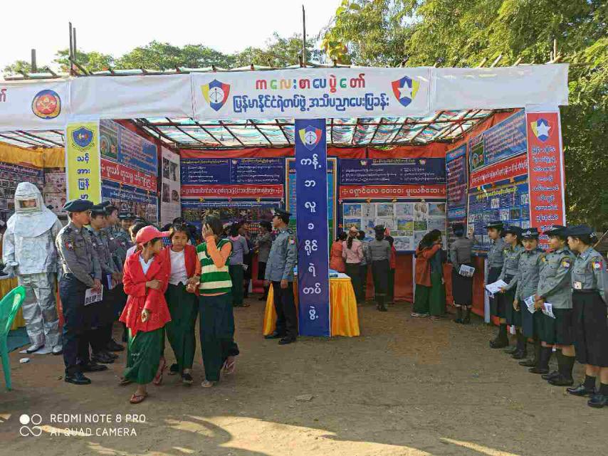 During the event, officials from the district Police station shared Knowledge about reduction of human trafficking and traffic accident. Then, handouts on human trafficking and traffic accident awareness were given away to attendees.—Lu Aung(Katha)