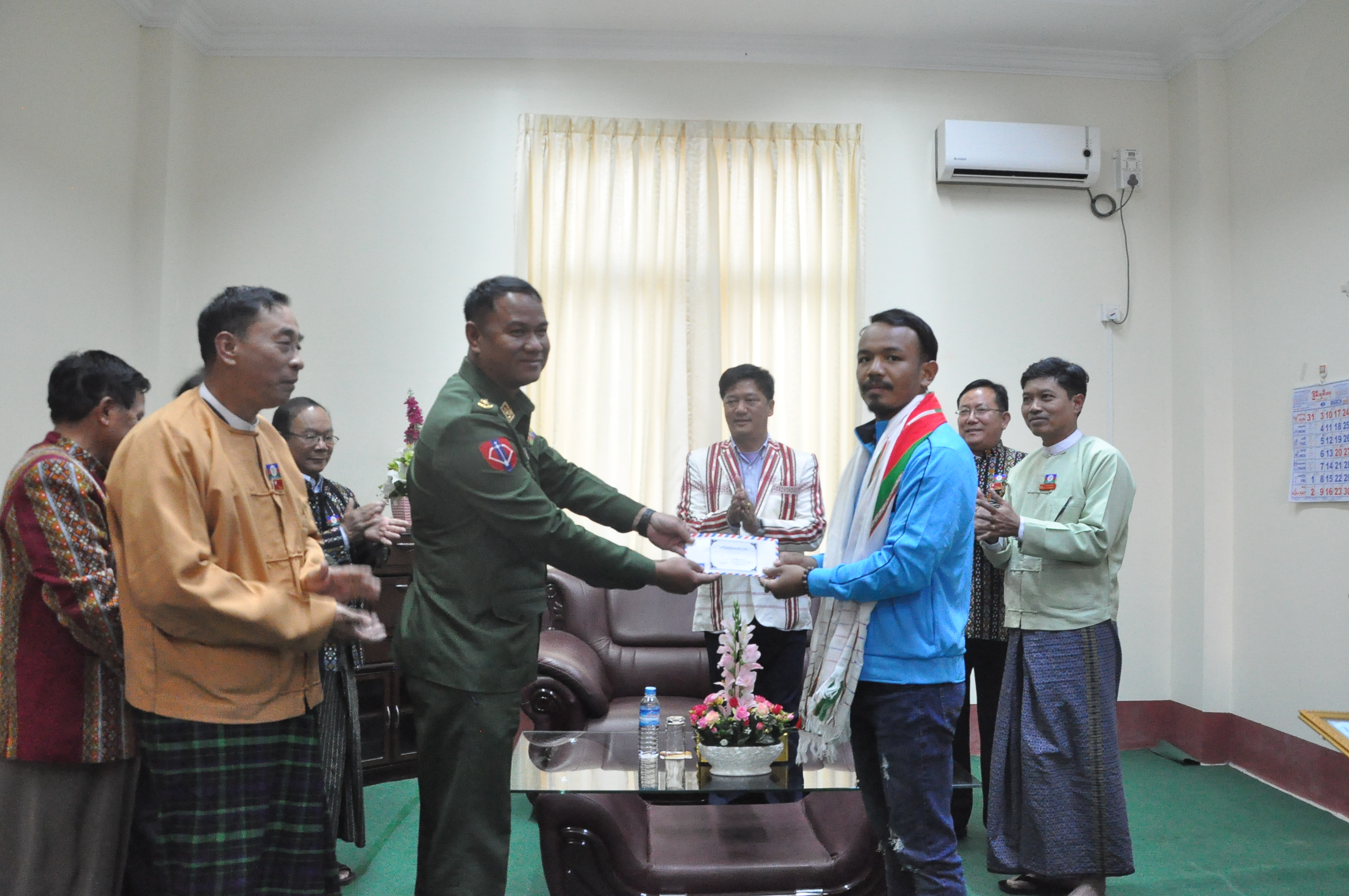 A ceremony to present a certificate of honour and cash to a Chin ethnic fighter who defeated his opponent in the Mixed Martial Arts (MMA) championship took place at the meeting room of the Chin State government office in Haka yesterday evening.
