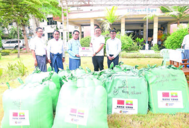 UNION Minister for Information U Maung Maung Ohn received the first batch of relief supplies donated by the State Power Investment Corporation (SPIC) of China through the Myanmar Consulate General in Kunming for the earthquake-affected people yesterday in Nay Pyi Taw.