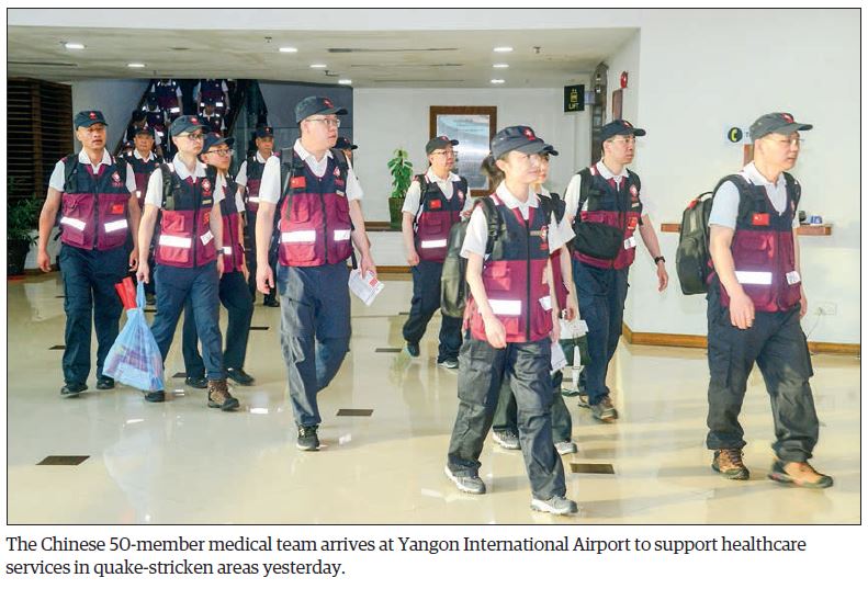 IN response to the recent Mandalay Earthquake in Myanmar, a 50-member medical team from China has arrived in Yangon to support healthcare efforts in the affected regions.