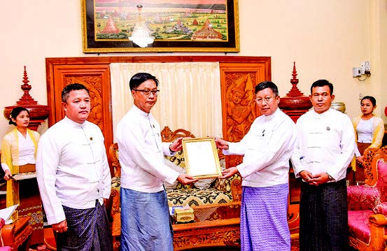 Deputy Minister for Foreign Affairs U Lwin Oo handed over the donation made by Chishar temple Sayadaw Venerable Qianze from Guilin of Guangxi Zhuang Autonomous Region of the People’s Republic of China for the reconstruction of religious buildings damaged by the Mocha storm in Myanmar to the Ministry of Religious Affairs and Culture at the Ministry building in Nay Pyi Taw yesterday.