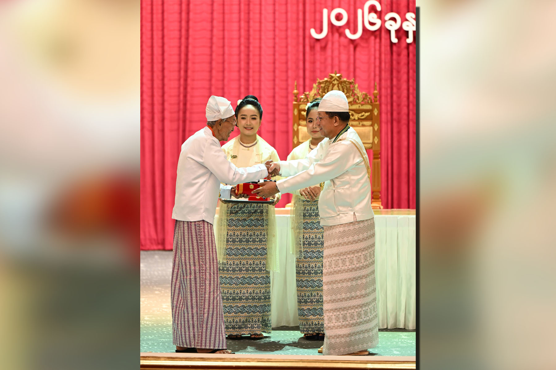 Also, present at the ceremony were Daw Kyu Kyu Hla, the wife of the Senior General, SSPC Vice-Chairman Vice-Senior General Thiri Pyanchi Maha Thray Sithu Soe Win, Commission Member Prime Minister Zeya Kyaw Htin Thray Sithu U Nyo Saw and his wife, the Commission Member Executive Chief and his wife, the Commission Secretary and his wife, Commission members and their wives, Union-level dignitaries, Union ministers and their wives, senior Tatmadaw officers from the Office of the Commander-in-Chief, title recipients and their families. — MNA/TTA