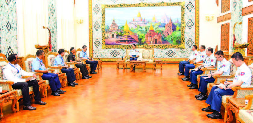 Commander-in-Chief (Air) General Tun Aung received a delegation led by Air Vice-Marshal Ichettira Iyappa Kuttappa VM VSM, Assistant Chief of the Air Staff (Intelligence) of the Indian Air Force, who attended the sixth Myanmar-India bilateral air force dialogue held from 14 to 16 May, yesterday in Nay Pyi Taw.
