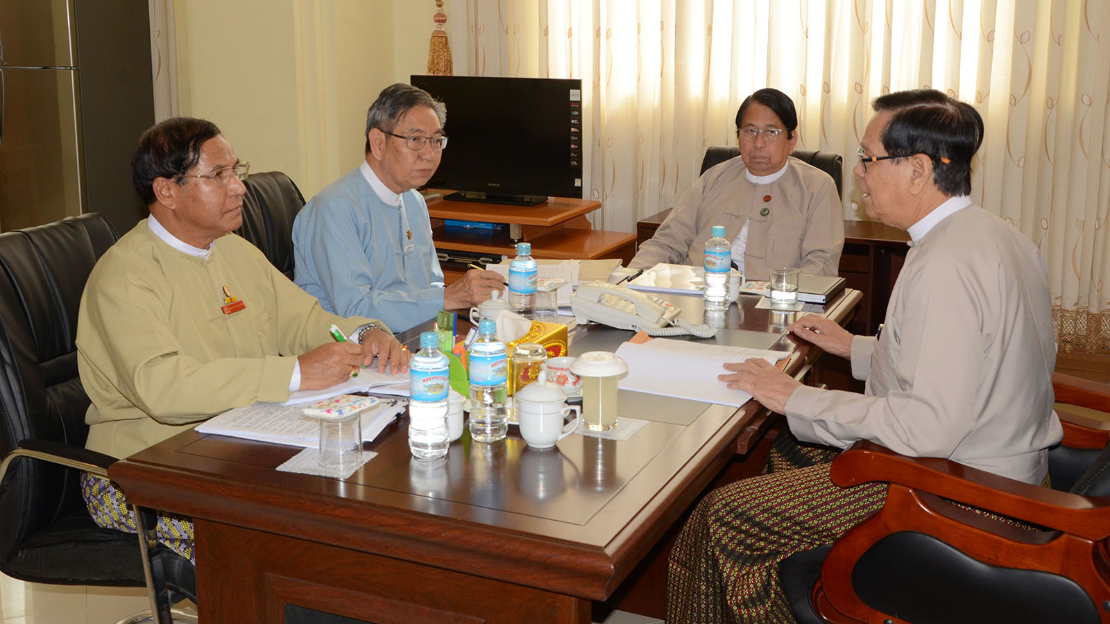 The meeting was attended by committee Chairman Amyotha Hluttaw Deputy Speaker U Aye Tha Aung, Vice Chairman 1 Union Minister for Information Dr Pe Myint, Secretary Deputy Minister for Union Government Office U Tin Myint and Member Deputy Attorney-General U Win Myint. — MNA (Translated by TTN)