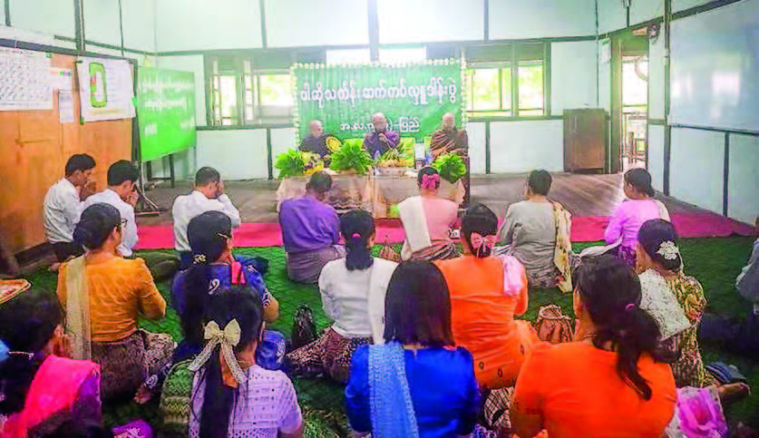 A collective Waso robe offering ceremony was organized at Lunge Ahman Hall of the Basic Education Middle School No 3, Pyay, on 15 July. During the ceremony, Headteacher Daw Shwe Sin Ei offered Waso robes to member of the State Central Working Committee of the Sangha Administrator Sayadaw of Bayanathi Monastery, Aggamaha Ganthavacaka Pandita Bhaddanta Silasara. — Maung Shwe Win (Pyay)/ KTZH