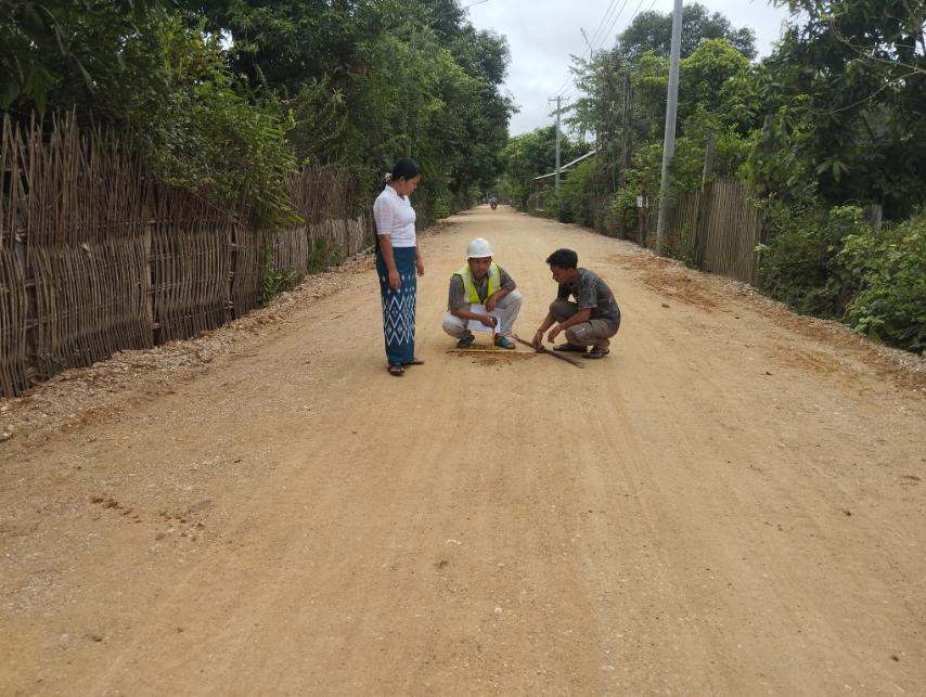 Led by Daw Aye Nan Htwe, Head of the Township Rural Road Development Department, the inspection team examined the completed road, which measures one mile in length, 16 feet in width, and six inches in height. During the visit, department officials met with representatives from the construction company to discuss project outcomes and encouraged the implementation of sustainable maintenance practices.