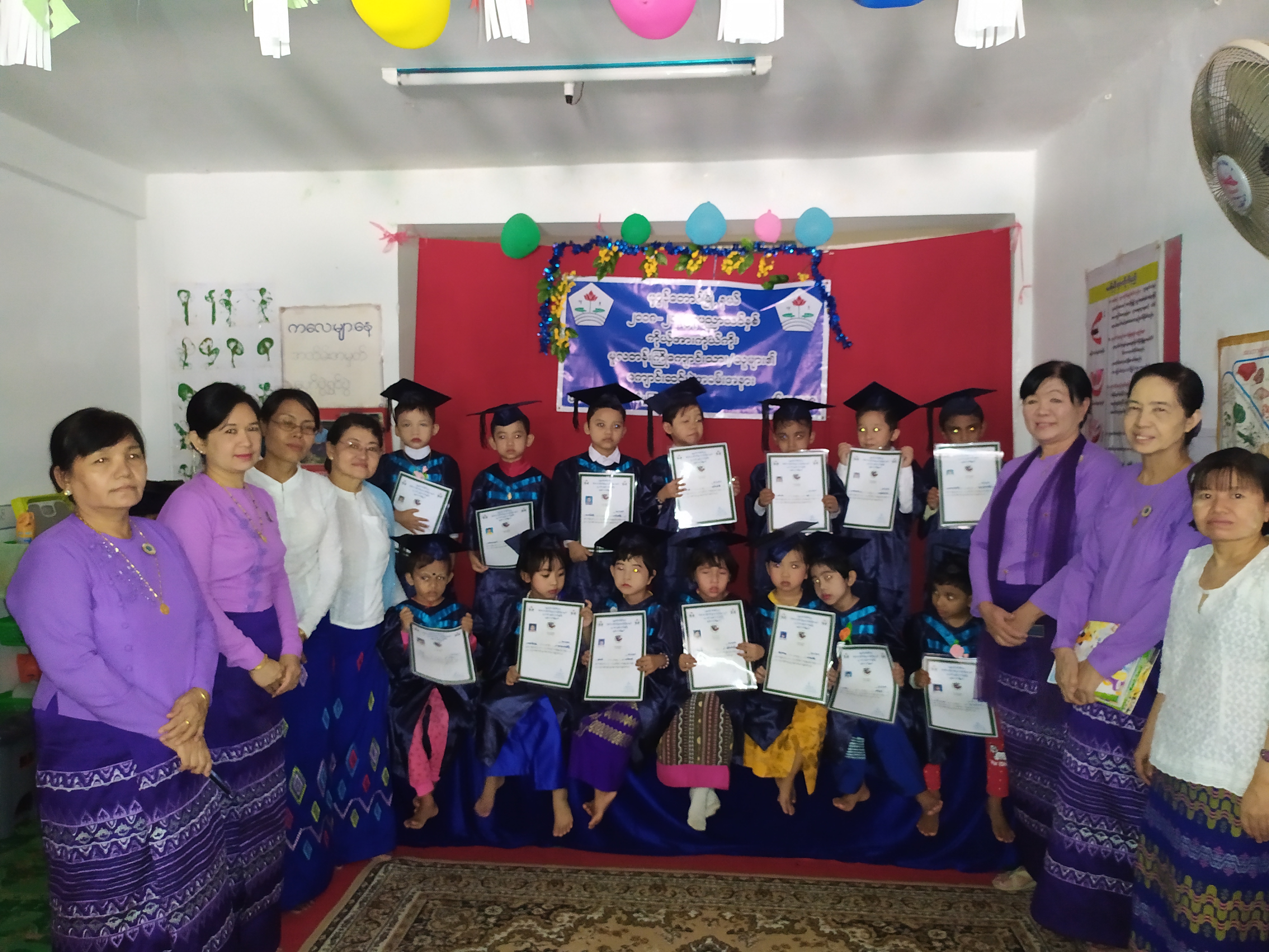 The completion of a self-reliant pre-primary school recognized by the Township Social Welfare Department in Pazubdaubg Township, Yangon East District, Yangon Region took place at the pre-primary school this morning.