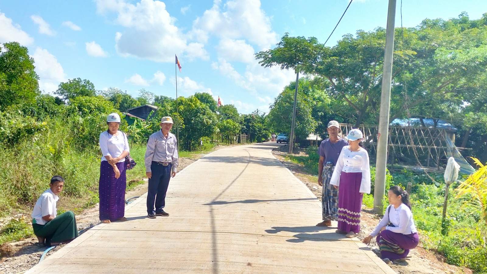 The concrete road measuring 430 ft. in length, 12 ft. in width and six inches in volume is being constructed with K 18.0 million including K 15.0 million of DRD’s funds for 2024-2025 fiscal year and K 3.0 million contributed by local people.—Maung Khaing (DRD)