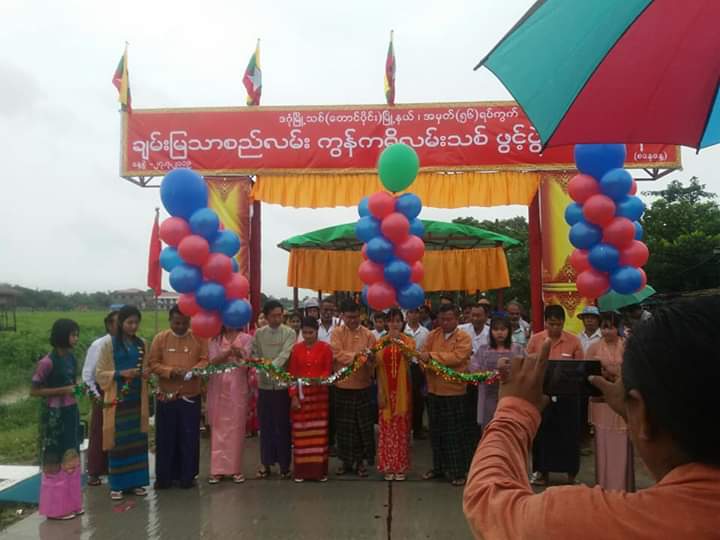 The road was formally opened by the Pyithu Hluttaw Representative U Aye Naing, Regional Lawmaker U Thein Naing, Township Administrator U Hla Myint, Chairman of the township development committee U Min Min Latt and concerned officials by cutting a ceremonial ribbon. The newly-opened road is 2550 ft. long, 18 ft. wide and seven inch thick and was built with the fund in the fiscal year 2018-2019.