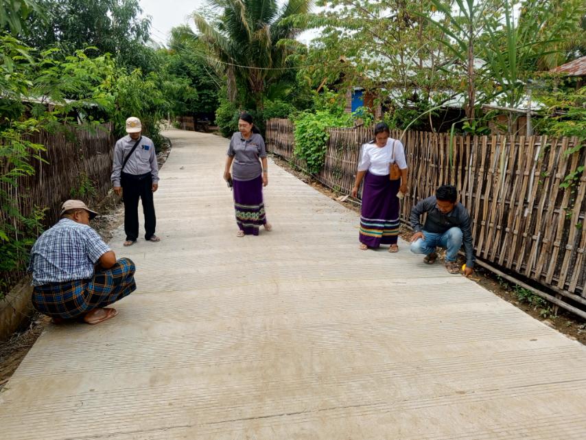 The Rural Development Department of Zeyarthiri District, Nay Pyi Taw Union Territory, conducted a field inspection of the ongoing concrete road paving project in Gyopin Village this morning. The project is being funded by the Nay Pyi Taw Council under the 2025–2026 fiscal year budget.