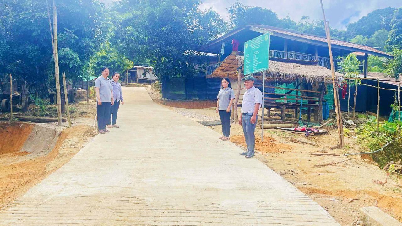 Officials from the Tachilek Township Rural Development Department, Shan State (East), conducted a field inspection of the concrete road paving project in Panku (Lahu) Village this morning.
