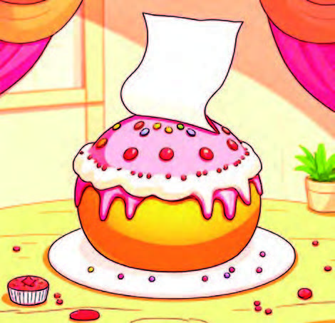 The imagery of glueing a piece of paper onto a cake represents how intricate and complex conversations can become when they go back to the same point over and over again, creating a cycle that feels unending.