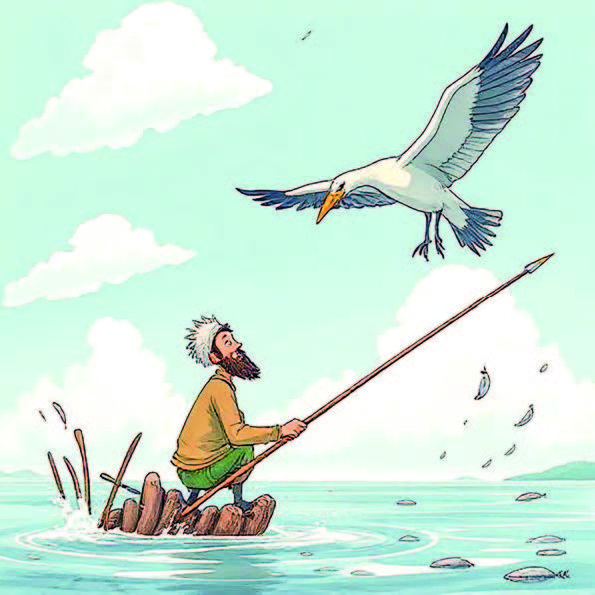 This wisdom comes from a story about a man who learned amazing spear-catching tricks by watching a crane. He practised until he could catch even knives in his mouth! People loved his shows, and the king invited him to perform.