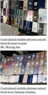 Another 36 illegal cell phones worth about K7.2 million were also seized from a South Korean citizen at the same terminal at 6 am.