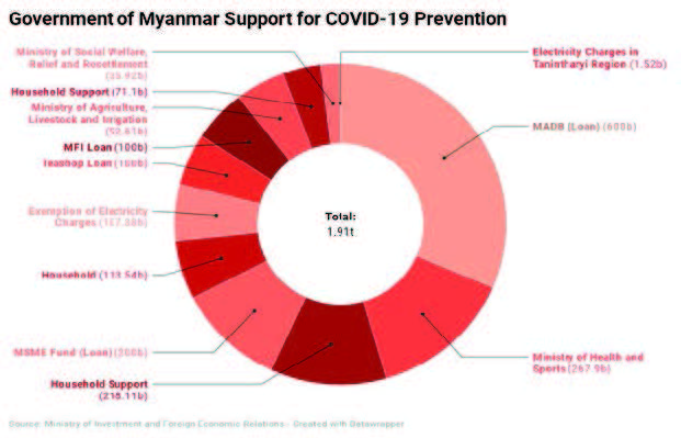 In line with our CERP, to date, we have disbursed close to MMK 2 trillion aimed at addressing the social, health and economic impacts of COVID-19. This figure includes the disbursement of MMK 200 billion to assist our nation’s manufacturing, hospitality, tourism, and services sectors. A further MMK 600 billion has been provided to farmers at MMK 50,000 per acre of farmland. MMK 100 billion was provided to our microfinance sector and MMK 200 billion to our MSMEs. A further MMK 100 billion has been disbursed to small tea shops and street-stalls to ensure their survival.