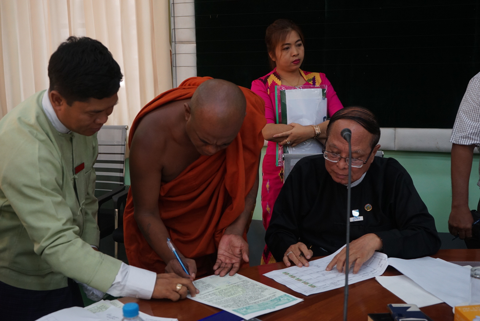A ceremony to present crop compensation to 13 farm owners for loss of crops in the project area of Hanthawaddy International Airport began, was held at the meeting hall of the regional government office in Bago yesterday afternoon.