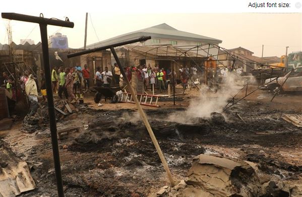 Some 11 trucks laden with 40-feet containers were also destroyed and seven buildings razed by the raging inferno caused by the explosion, Okunbor said.