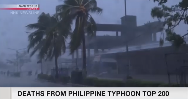 Philippine national police say the death toll from Typhoon Rai has surpassed 200.