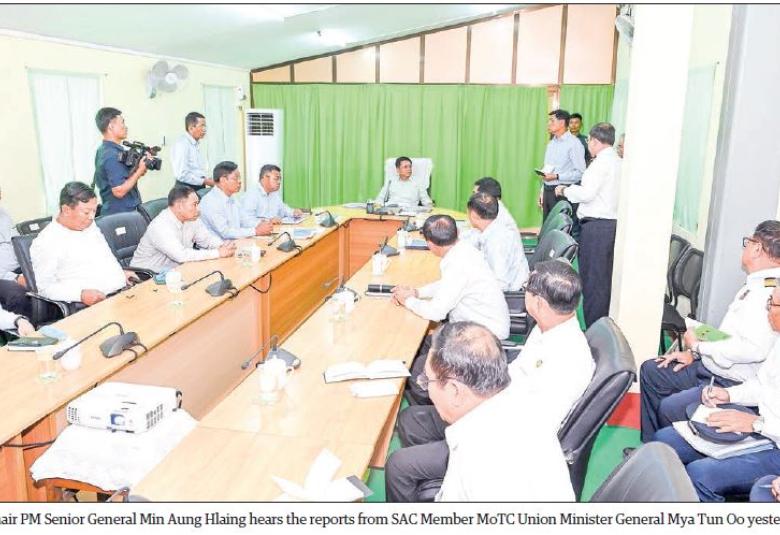 SAC Member Union Minister for Transport and Communications General Mya Tun Oo reported on the progress of improving the Yangon circular railway, matters concerning the City Circular Diesel Locomotive Shed (Insein), the background history of the circular railway, and traffic safety along the railway, Deputy Minister U Aung Myaing on preparations to allow higher speed of trains in main railway sections, mechanical requirements of locomotives, carriages and DEMU (rolling stocks), signals and traffic requirements and reviews, manufacturing of concrete sleepers for all sections and further production of sleepers.