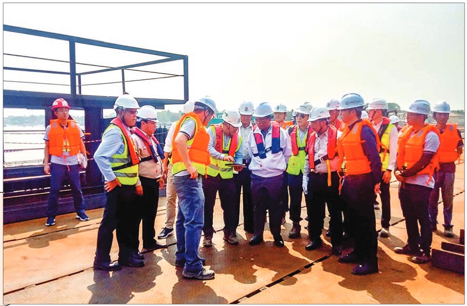 Deputy Director-General U Kyaw Kaung Cho from the Bridge Management Depart-ment and Project Director Mr Yun Ho Cho from the contractor company GS Engineering & Con-struction Corporation explained the construction project.
