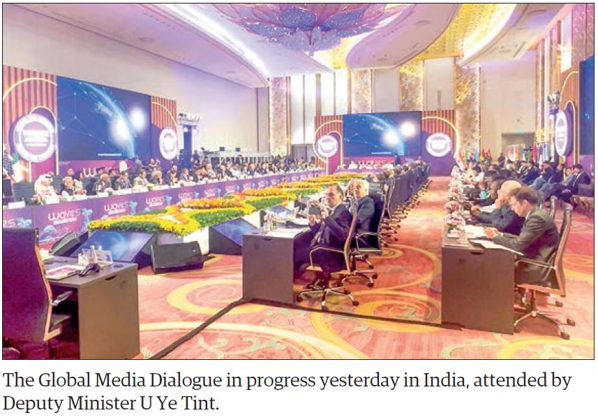 DEPUTY Minister for Information U Ye Tint attended the Global Media Dialogue for the second-day event of WAVES 2025 held at the Jio World Convention Centre in Mumbai, India.