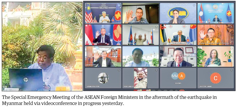 DEPUTY Prime Minister and Union Minister for Foreign Affairs U Than Swe attended the Special Emergency Meeting of the ASEAN Foreign Ministers in the aftermath of the earthquake in Myanmar held via videoconference yesterday. The meeting was convened to coordinate the humanitarian assistance, and relief and recovery operations in the affected areas in Myanmar and Thailand in the aftermath of the devastating earthquake.