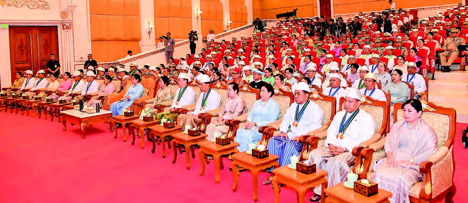 He added that those who participated in building a peaceful, modern developed nation with excellent performances, made sacrifice of life in safeguarding the Our Three Main National Causes adopted as the national policy, endeavoured to ensure community peace and stability, rule of law and emergence of a modern and developed nation with significant performances, discharged diplomatic duties in the international arena with outstanding performances, carried out creation in science and arts as well as other subjects globally, and served the State with literary and fine arts expertise are idols of the State. As such, the State Administration Council honoured those outstanding persons who served the interests of the State.