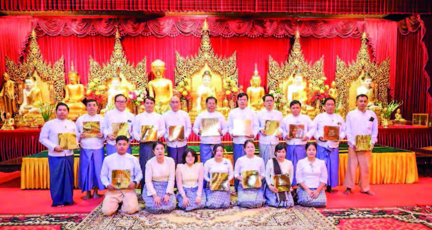 STAFF members from the Min­istry of Foreign Affairs and My­anmar embassies, consulates-general and representative offices abroad, along with their families donated gold plates to the Shwedagon Pagoda. The do­nation includes two gold plates weighing six ticals each and thirteen gold coatings weighing one ticals each, with a total cash donation of K6.25 million.