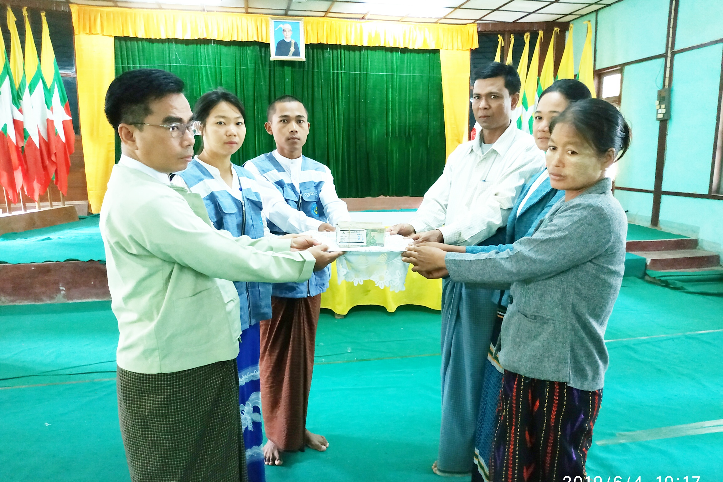 The deputy township administrator, officials from the DDM and concerned officials provided Ks. 570,000 in total to storm victims from 16 households from seven villages during the ceremony.—Aung Win Nyein