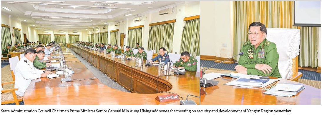 Also present at the meeting were SAC Joint Secretary General Ye Win Oo, SAC Member Union Minister for Home Affairs Lt-Gen Yar Pyae, senior Tatmadaw officers from the Office of the Commander-in-Chief and members of the Yangon Region cabinet. — MNA/TTA