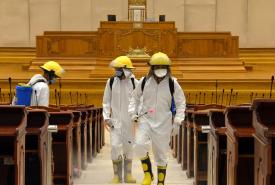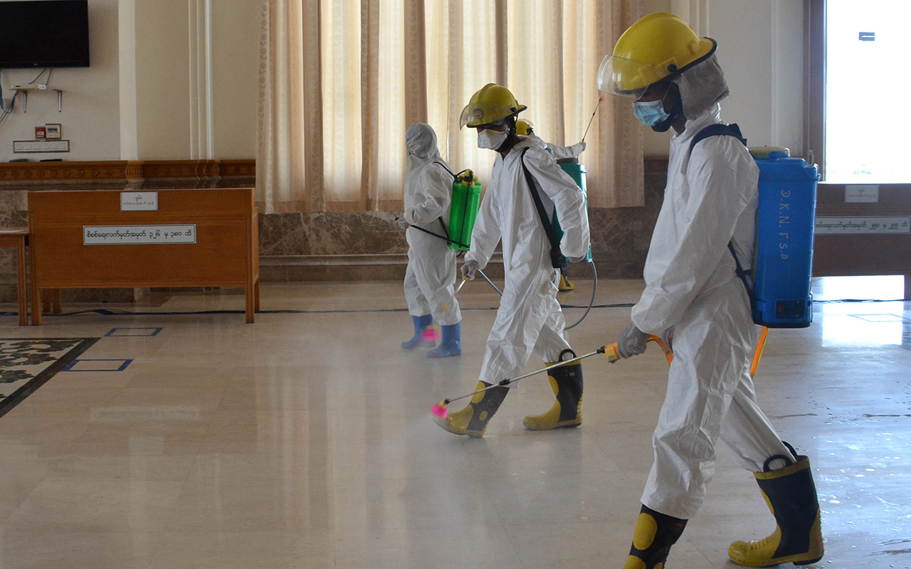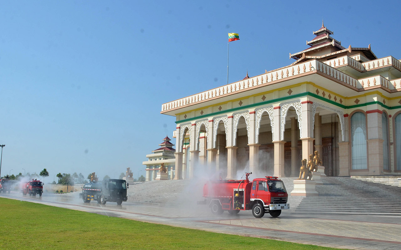 Disinfectants were sprayed at the buildings of Pyidaungsu Hluttaw, Pyithu Hluttaw and Amyotha Hluttaw yesterday morning as a move to prevent spread of COVID-19 in Nay Pyi Taw Union Territory.