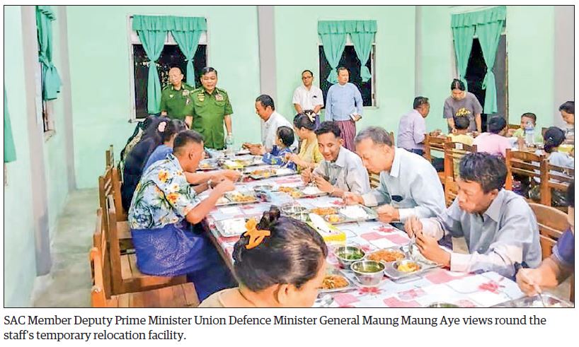 MEMBER of the State Administration Council Deputy Prime Minister and Union Minister for Defence General Maung Maung Aye, accompanied by ministry officials, visited the housing and temporary evacuation areas of the ministry’s personnel and staff affected by the strong earthquake and met their families yesterday evening.