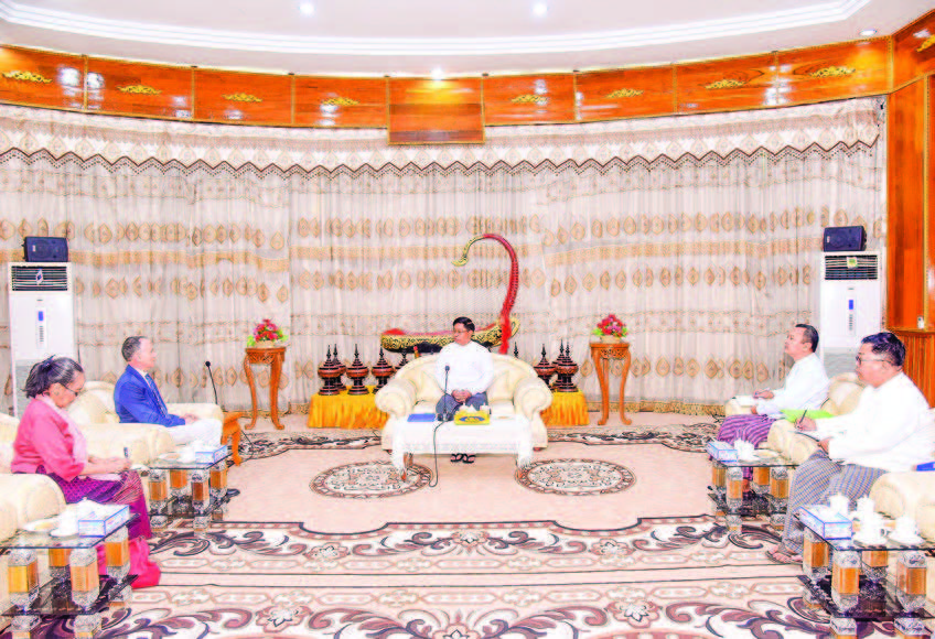 State Administration Council Member, Deputy Prime Minister and Union Minister for Defence Admiral Tin Aung San received United Nations Interim Resident Coordinator for Myanmar and Interim Humanitarian Coordinator Mr Marcoluigi Corsi at the lobby of the Union Minister’s office yesterday morning.