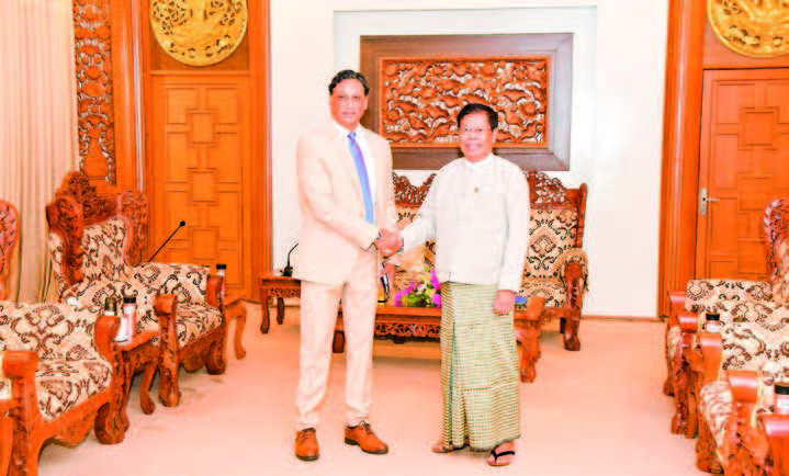Deputy Prime Minister and Union Minister for Foreign Affairs U Than Swe received Mr Titon Mitra, Resident Representative of the United Nations Development Programme in Myanmar, at the Ministry of Foreign Affairs in Nay Pyi Taw yesterday.