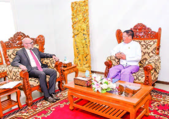 U Than Swe, Deputy Prime Minister and Union Minister for Foreign Affairs, received Mr Jaime Nadal Roig, Representative of the United Nations Population Fund (UNFPA) to Myanmar, at the Ministry of Foreign Affairs in Nay Pyi Taw yesterday.