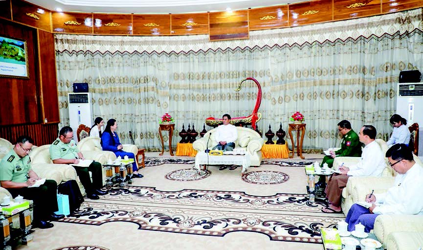 State Administration Council Member Deputy Prime Minister Union Minister for Defence Admiral Tin Aung San received Ms Ma Jia, Ambassador of the People’s Republic of China to Myanmar, at the Union Minister’s office yesterday afternoon.